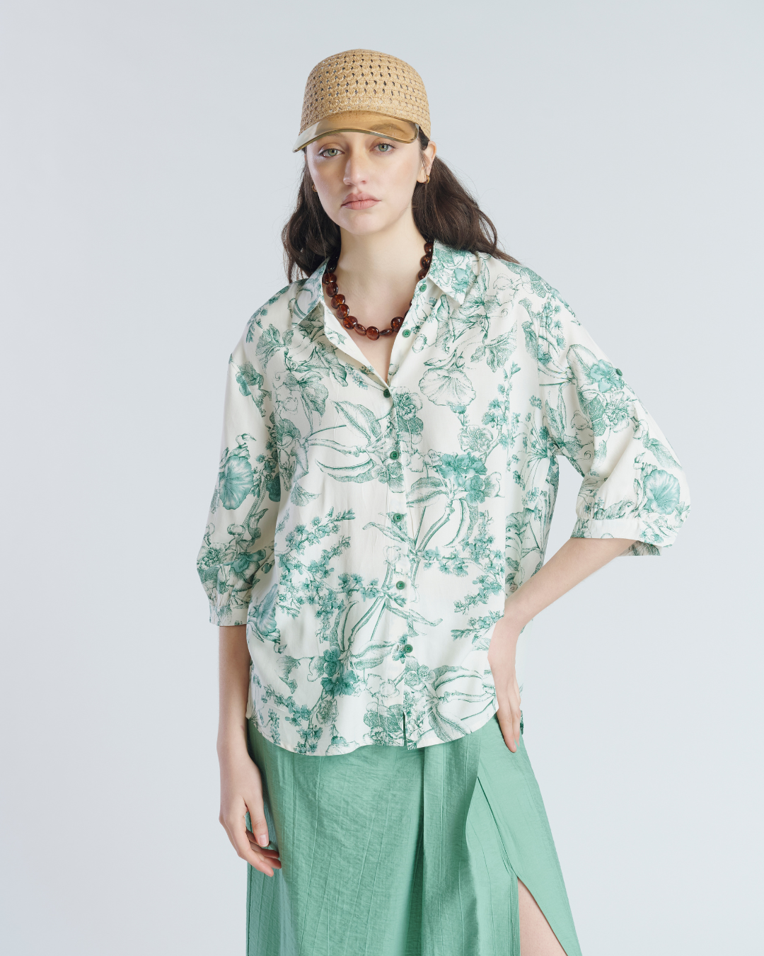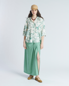 Blusa de algodón. Fit holgado con homros levemente caídos. Manga 3/ 4 ligeramente abullonada en el puño. Liviana e ideal para relajados días de verano.