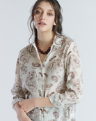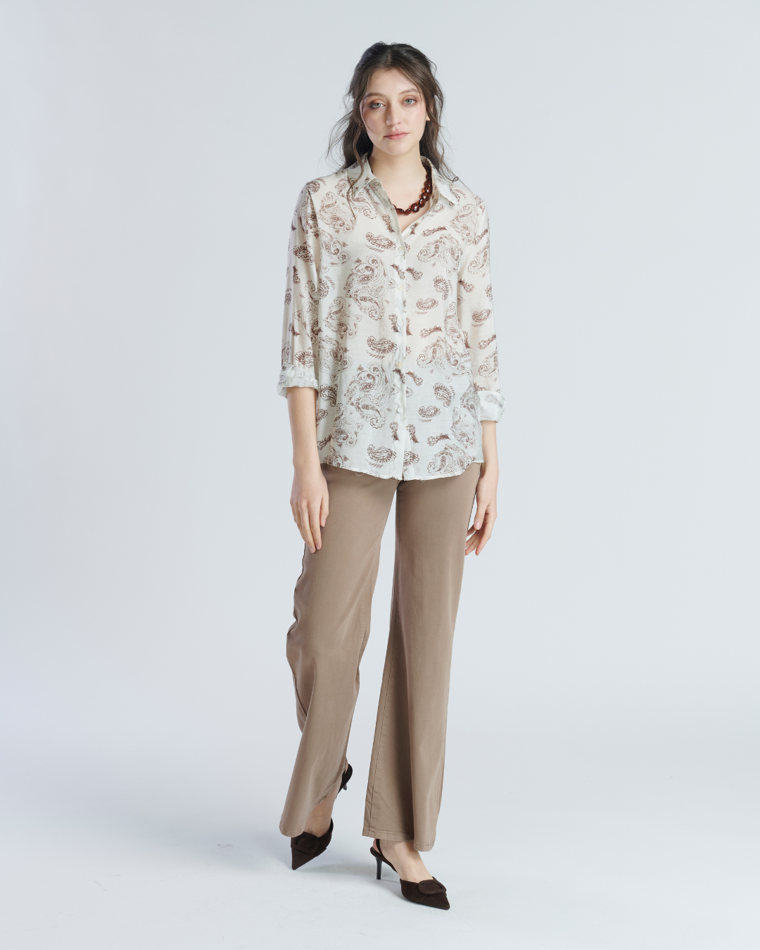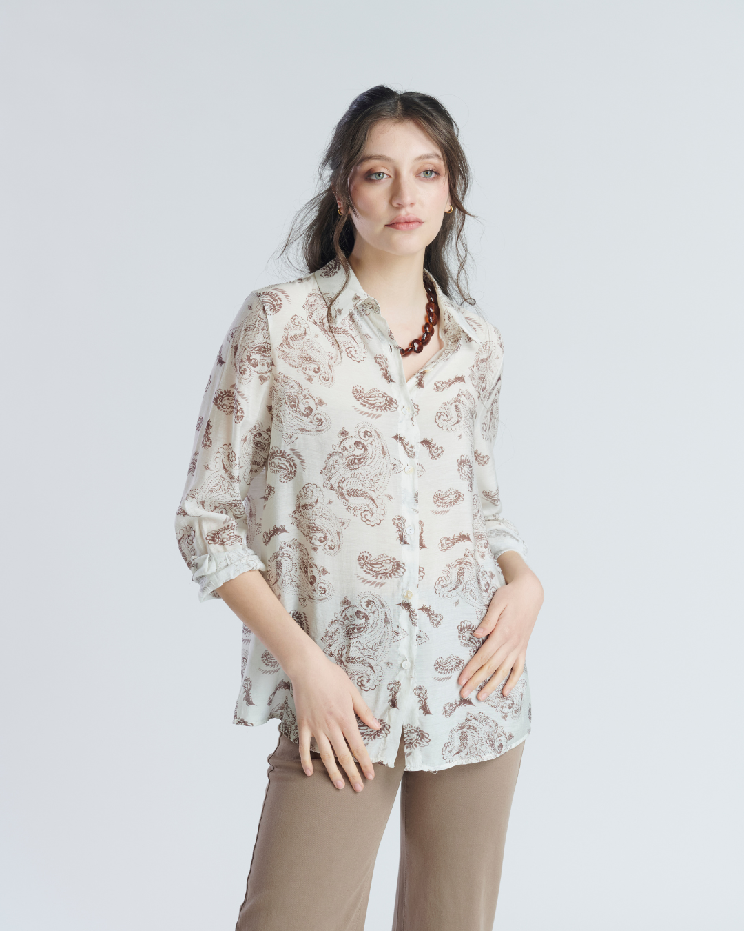 Blusa de tela vaporosa oversize. Estilo camisero con delicados prints vegetales.