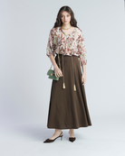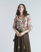 Una blusa ligera y femenina con estampado botánico en tonos tierra sobre fondo claro, ideal para un look natural y sofisticado. Su diseño de manga larga y corte recto aporta comodidad sin perder estilo, convirtiéndola en una prenda versátil para el día a día. Combínala con jeans para un look casual chic o con pantalones de lino para una ocasión más elegante.