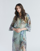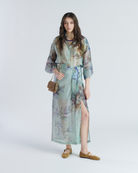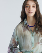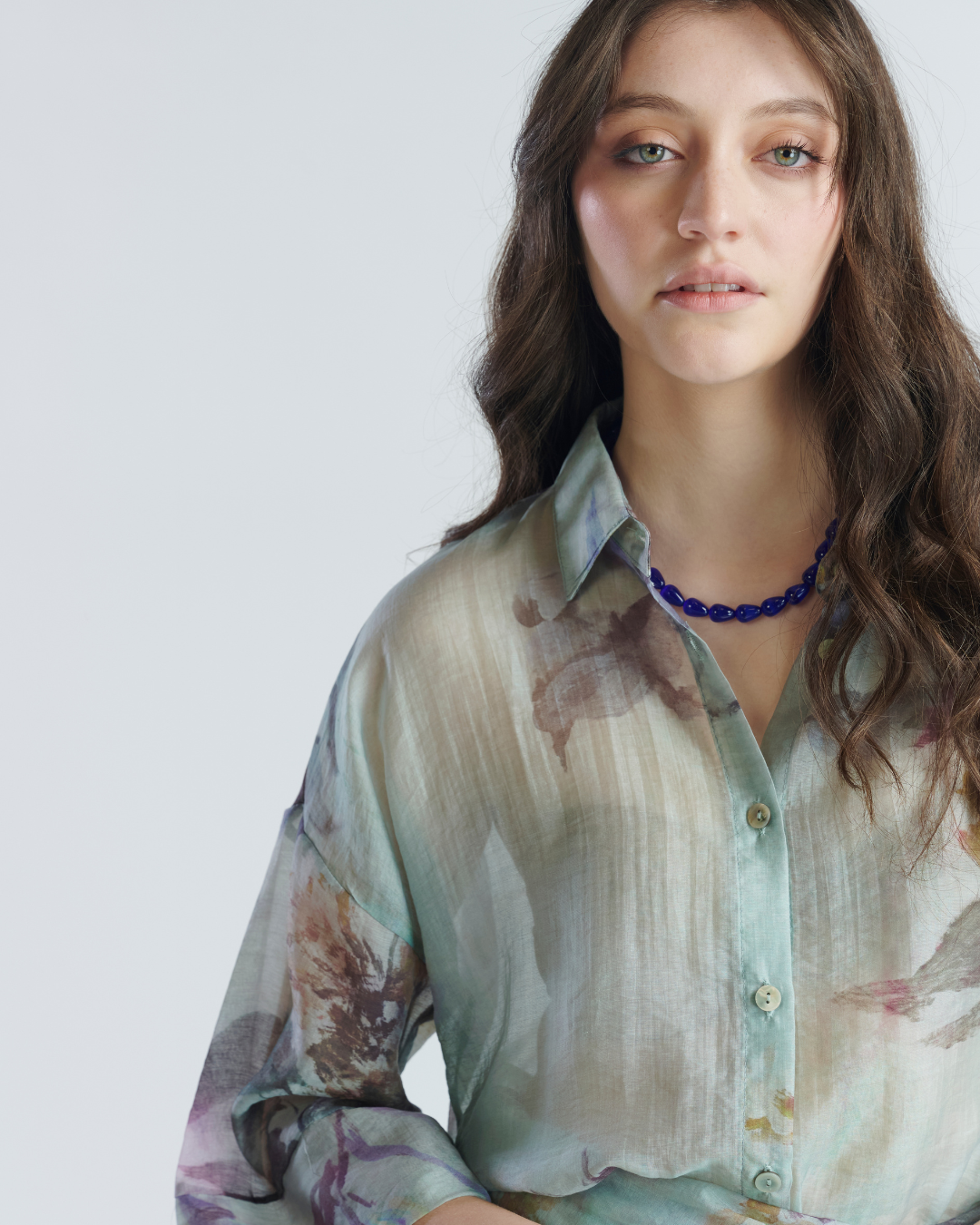 Camisa oversize vaporosa y de tela gasa. Hombros caídos y mangas 3/4 anchas de corte recto. Ligeramente ás larga en la parte posterior.