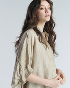 Camisa overside, croped en parte delantera y espalda algo más larga . Hombros caídos con mangas al codo y con puño de corte recto. Muy liviano y fresco ideal para un look relajado y chic de verano.