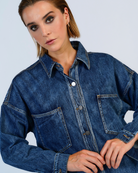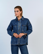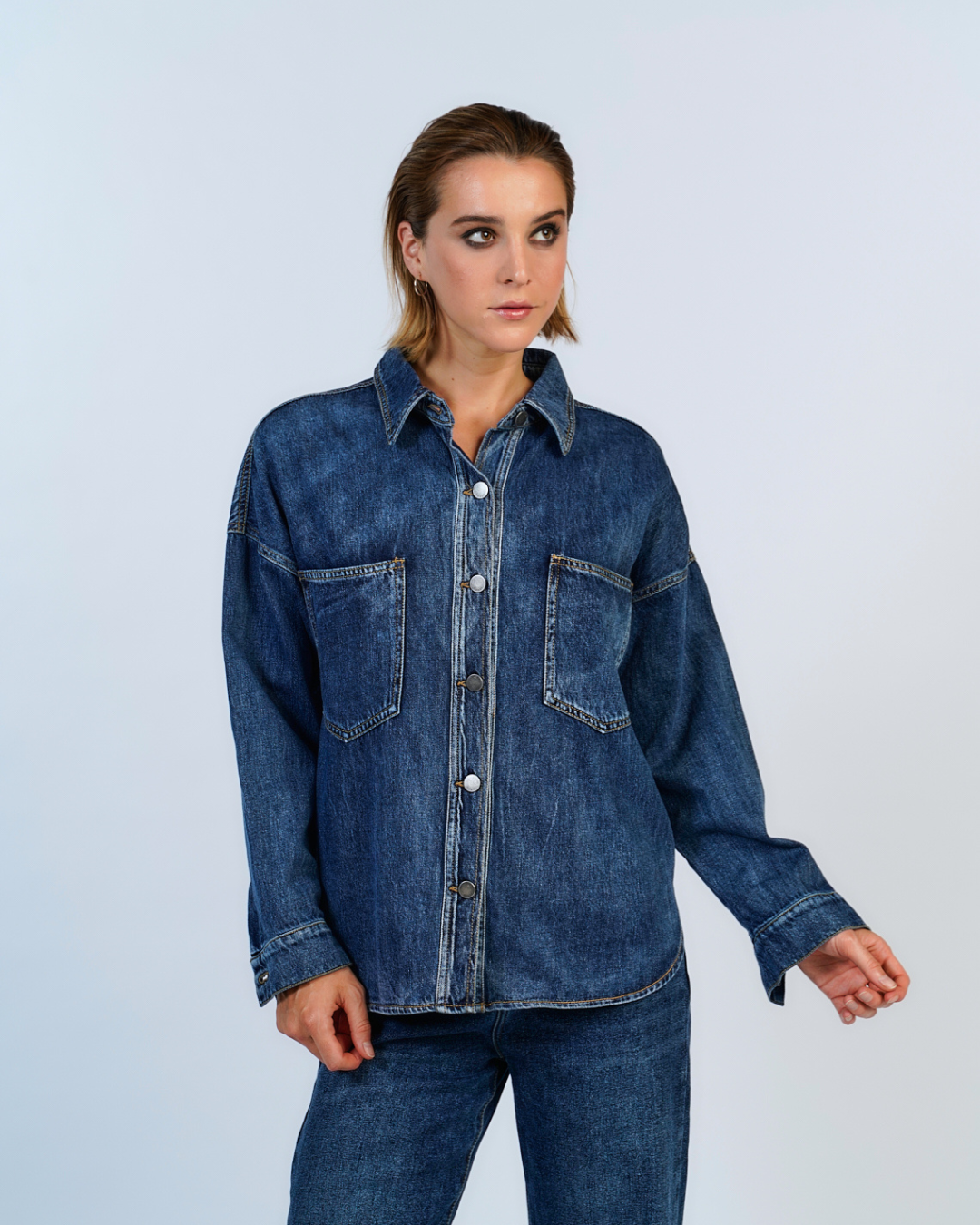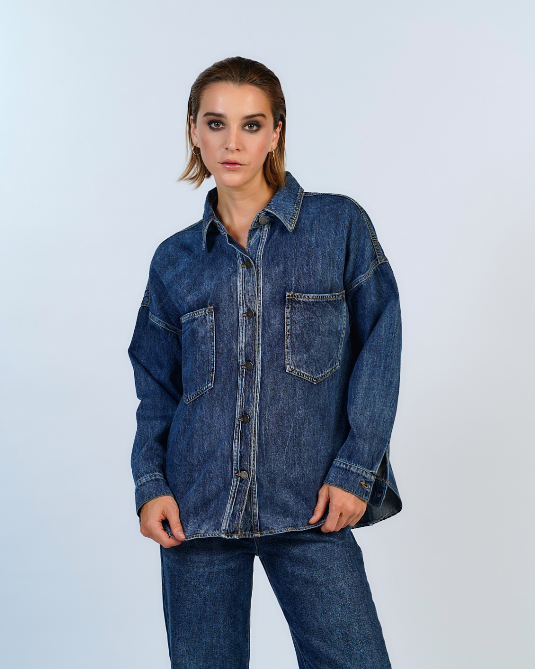 Camisa de Denim, fit holgado y diseño versátil. Confeccionado en material resistente, cuenta con bolsillos laterales funcionales y botonadura frontal.