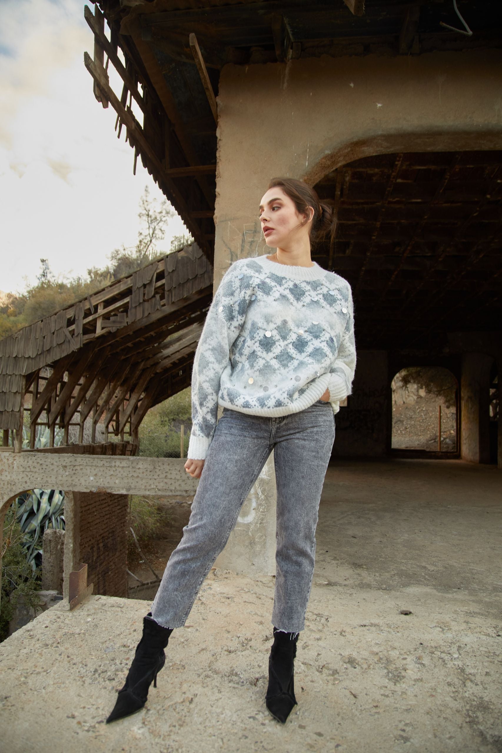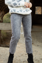 Jeans skinny gris de textura desgastada y denim elasticado.