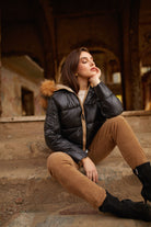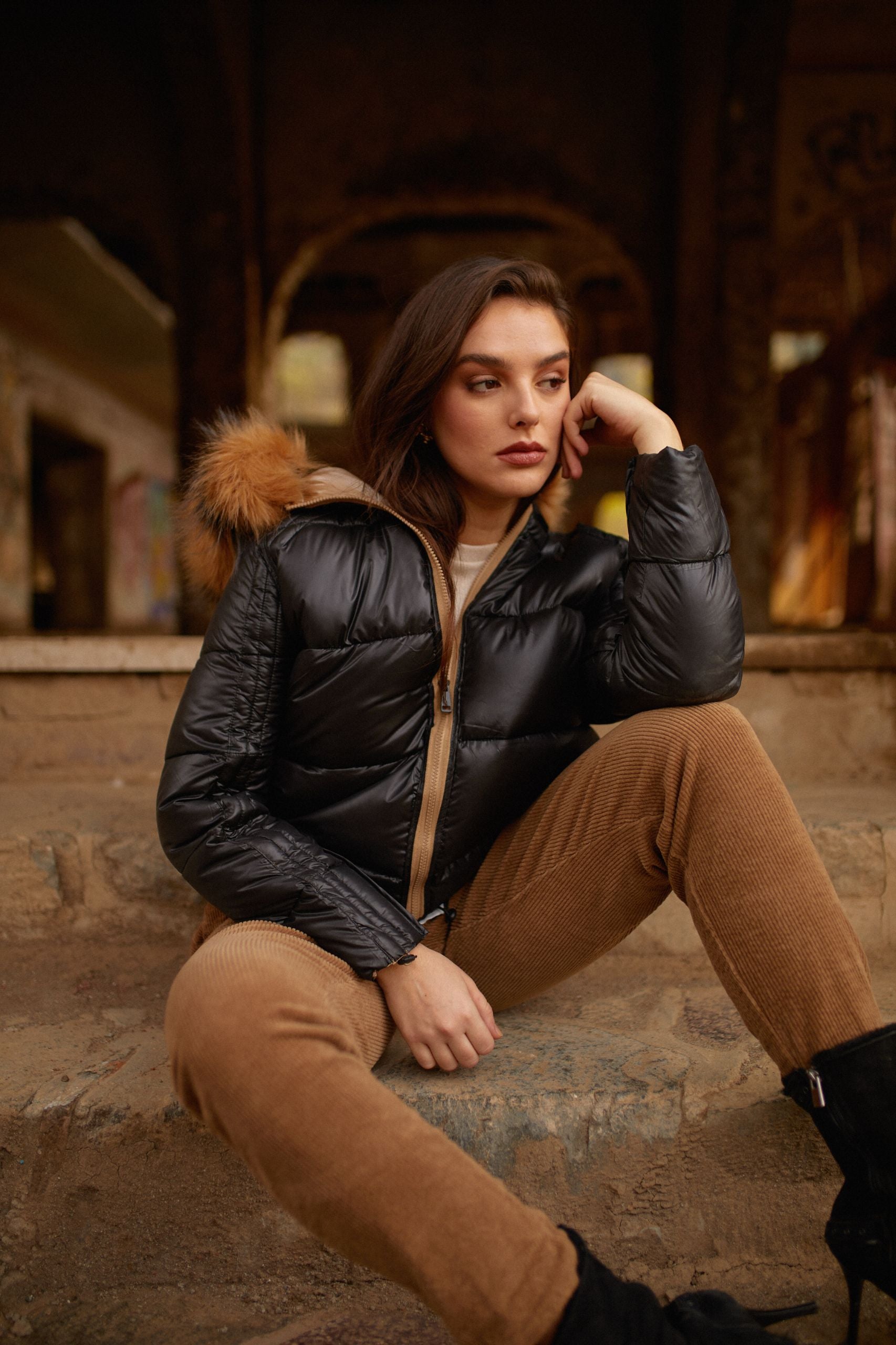 Parka puffa corta con gorro de piel pelo largo Via Donna invierno mujer.