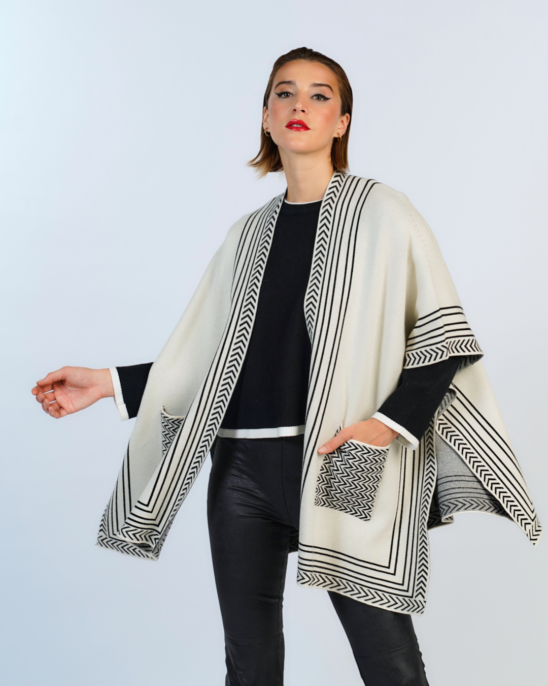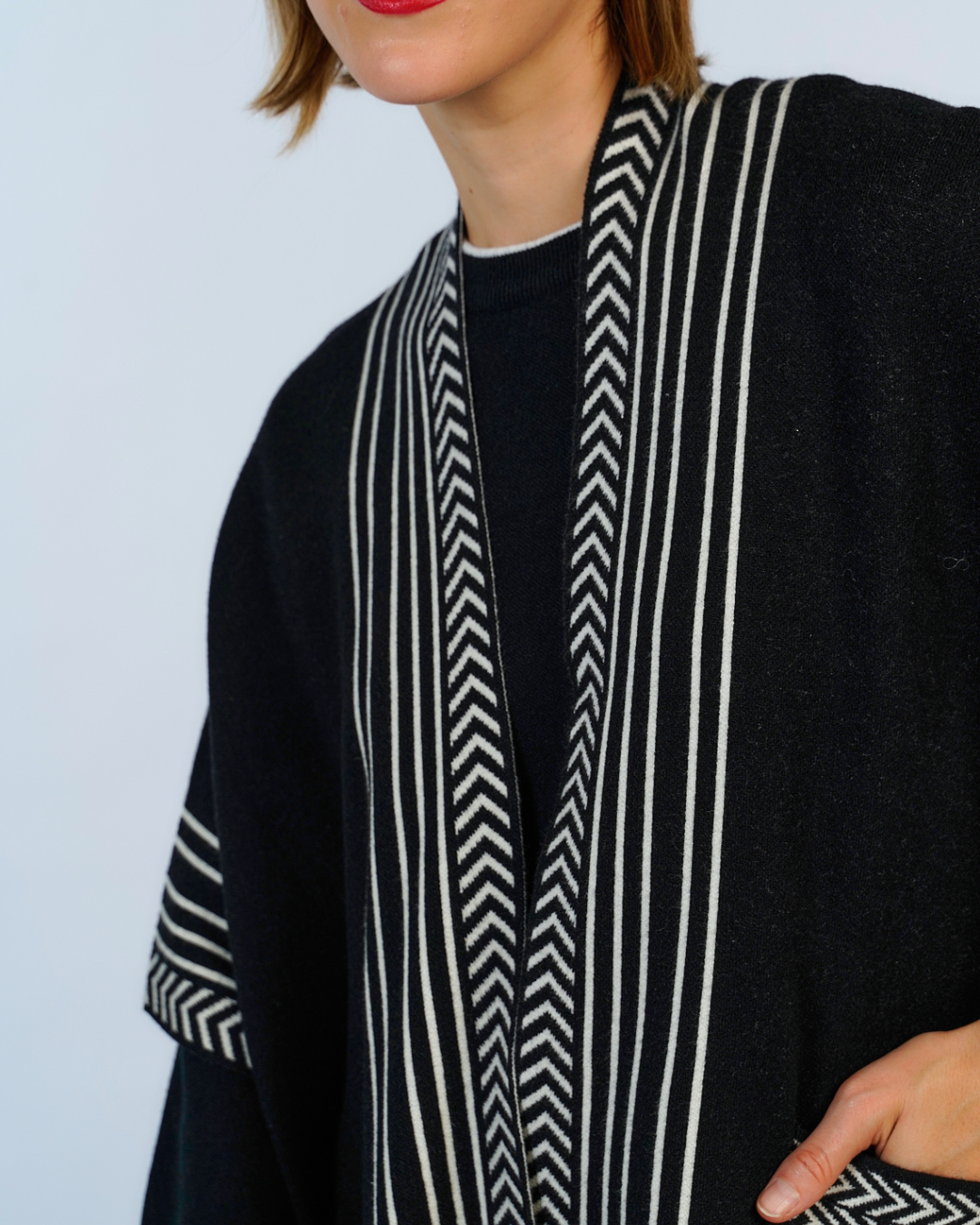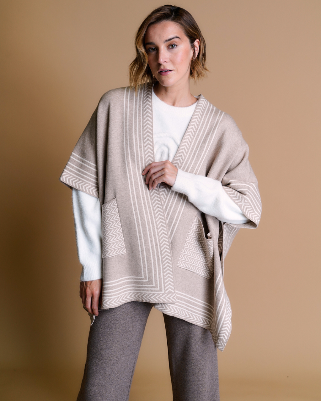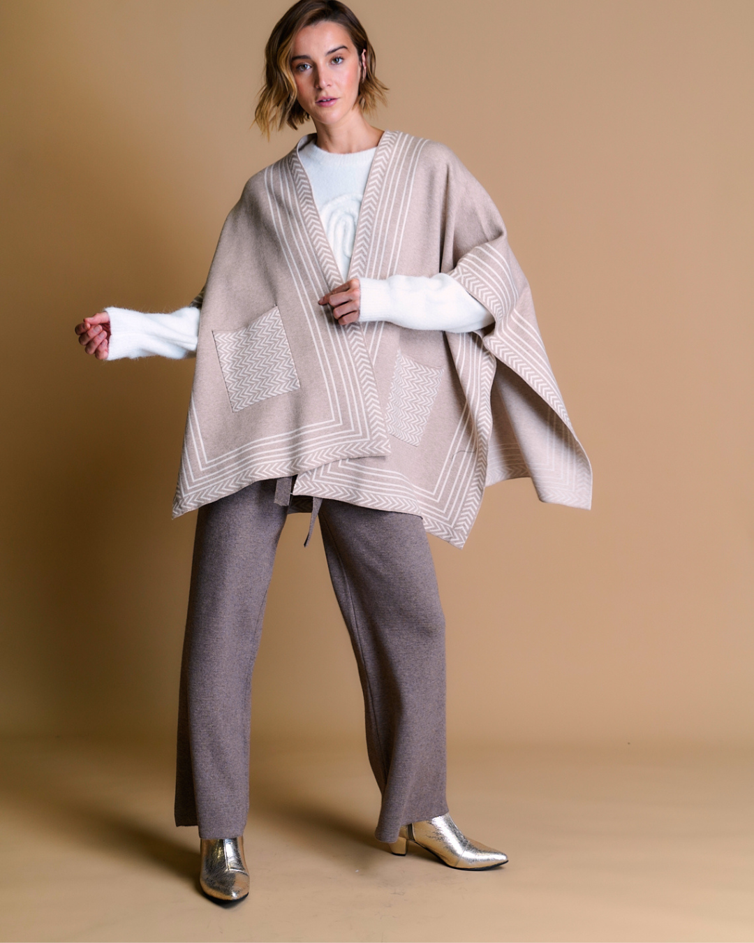 Tapado Espiga Tasca, confeccionado en tejido jersey con sutiles detalles en diseño zigzag, que aportan textura y carácter. Su estética boho lo convierte en una prenda versátil y auténtica, perfecta para completar looks con un aire libre y artístico.