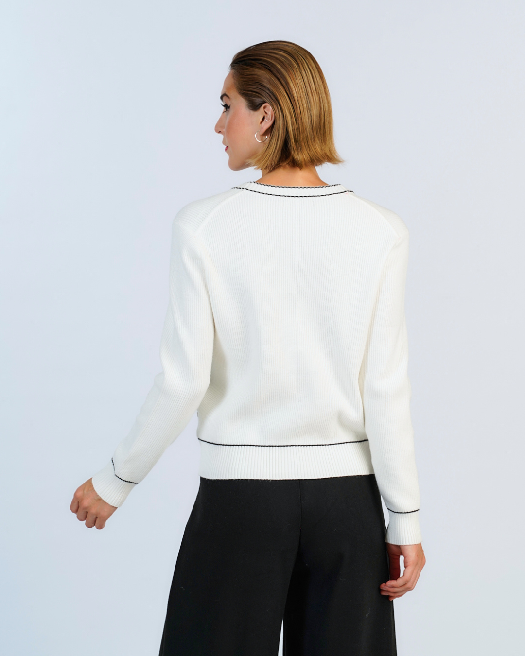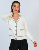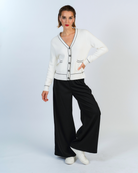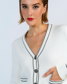 Cardigan con bordes en contraste, abotonadura con relieve y bolsillos, tejido acanalado