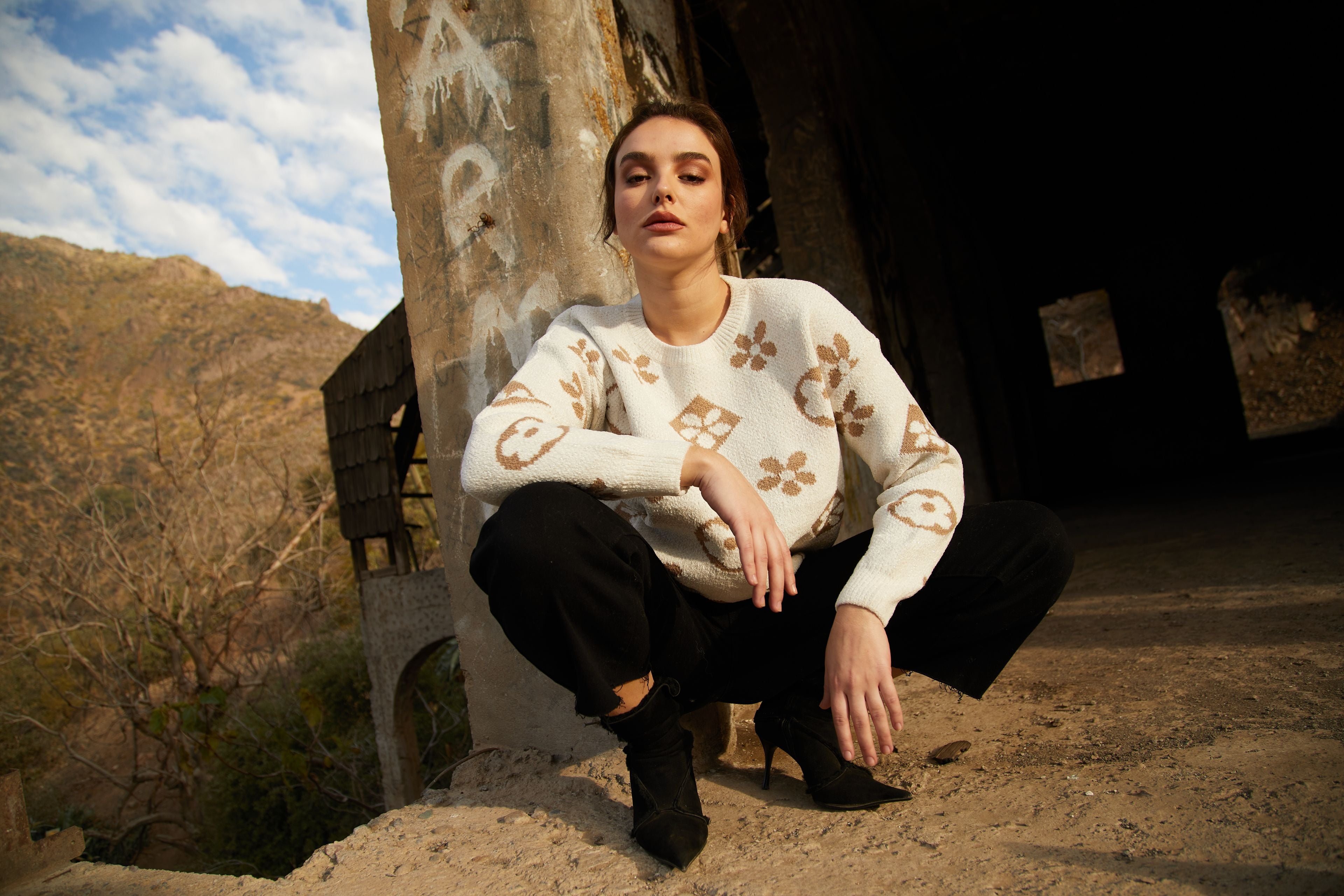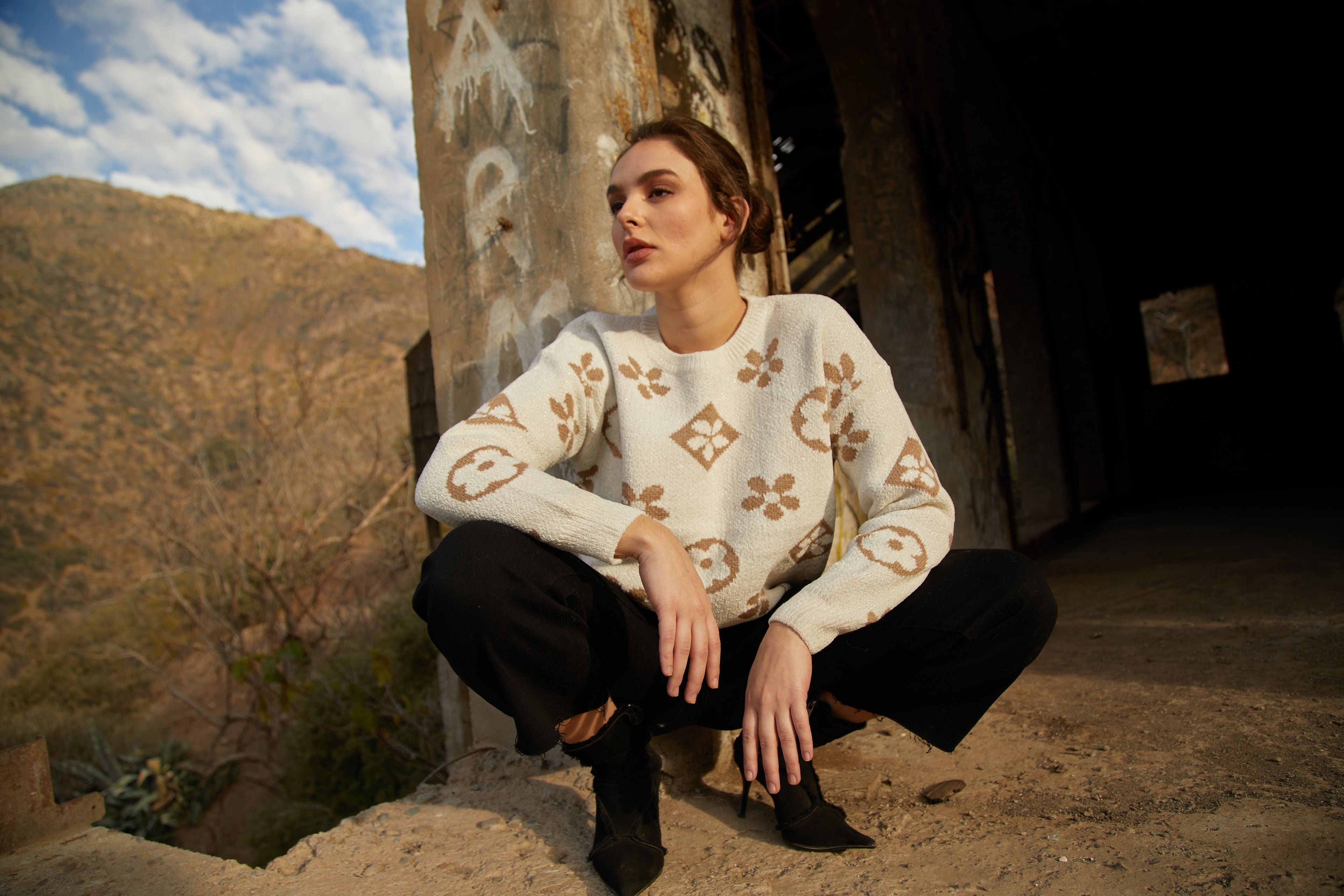 Tejido textura felpa con print icon Via Donna mujer invierno.
