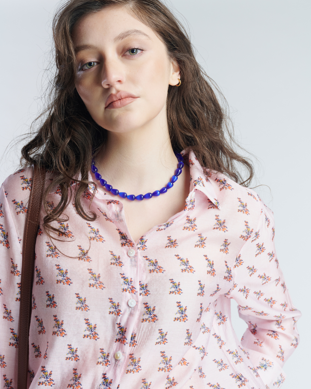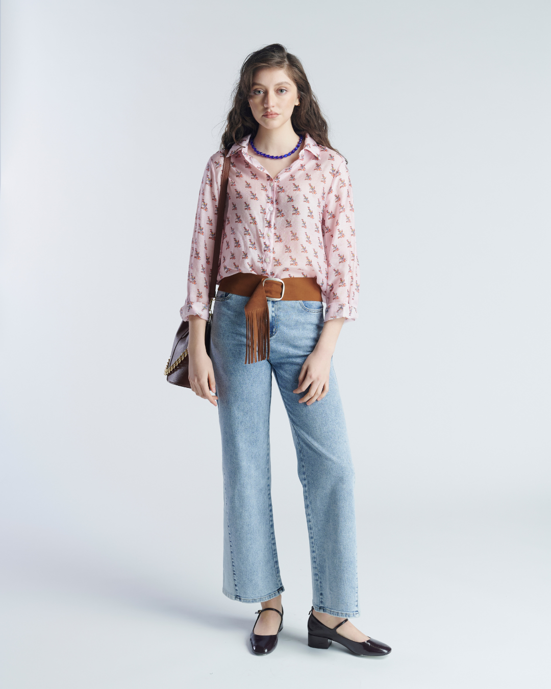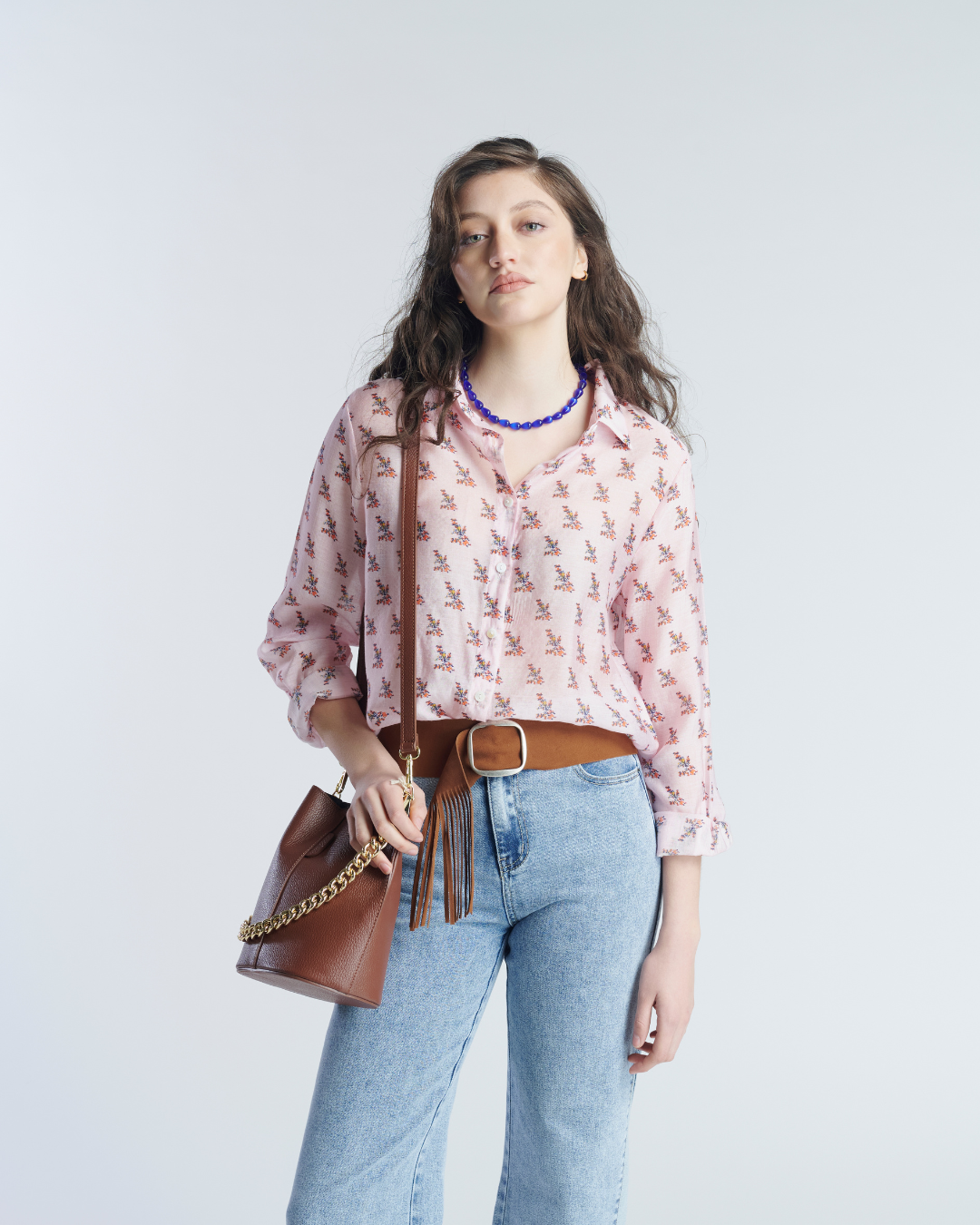 Blusa camisera de tela vaporosa. Manga larga con hombros ligeramente caídos. Relieve en parte posterior con costura fruncida en el centro.